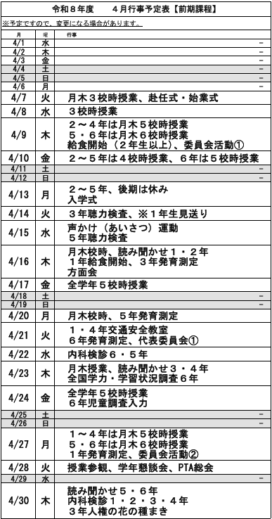 2026.03.30学校行事前期課程 学校行事のお知らせ 4月後期課程 学校行事のお知らせ 4月関連記事 7年生みんなで新聞紙バッグの製作 地域学校協働活動「プランター花づくり」 後期課程 学校行事のお知らせ 3月 後期課程 学校行事のお知らせ 8月 着任式、始業式 9年生私立高校説明会 前期課程 学校行事のお知らせ 12月 後期課程 学校行事のお知らせ 12月 2学期始業式 職場体験学習発表会 前期課程 学校行事のお知らせ 8月 後期課程 学校行事のお知らせ 6月 前期課程 学校行事のお知らせ 10月 田植え体験 前期課程 学校行事のお知らせ 1月 薬物乱用防止教室 後期課程 学校行事のお知らせ 4月 8年生企業講演会 自然教室に行ってきました! 第2回卒業証書授与式 3学期始業式 前期課程 学校行事のお知らせ 2月 前期課程 学校行事のお知らせ 3月 令和5年度入学式 後期課程 学校行事のお知らせ 5月 前期課程 学校行事のお知らせ 9月 研究発表会 後期課程 学校行事のお知らせ 11月 2学期始業式 後期課程 学校行事のお知らせ 10月